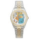 この男性用ウォッチは、3つの長方形、オレンジモダン、緑、ターコイズの半デザインを持ち、それぞれの内側に白い長方形を持つ。あなたはもしデザインが好きだが、色違うを好む、メッセージ私。