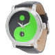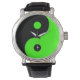 陰陽のシンボルは緑と黒のスタイリッシュ腕時計でコンテンポラリー道教の陰陽のシンボルを特徴とする。