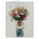 ジーンズに身を包カジュアルみ、白いトップシンプルに顔を完全に覆い隠す巨大な花束を持つ人。デイジー、ケシ、その他の開花コントラストの大きなカラフル配置鮮やかは、ミニマルな背景と服装で、自然の美しいを強調する印象的なビジュアルを作成する。花が中心のステージを取り、成長、生活、そしてシンプルさを象徴するシーンは、ウィムシーと静寂の感覚を醸し出している。