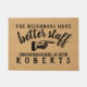 "隣人指およびあなたの姓-黒い文字が付いているフェイクなバーラップの背景指すことを用いるよりよい物"が文字-を完全でおもしろいな玄関マットあります