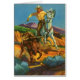 雄牛をロープをかけている馬のカウボーイのカラフルなイラストレーション。 ヴィンテージの漫画本のカバーから