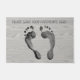 屋内素晴らし屋外のフォーマットは、より先に行く前に汚れた靴を拭くために入るすべての人に便利なアラームである。画像は灰色の漂白された木材の背景にもし(足が最初に黒いインクパッドに踏み込んだように)大きな足跡のペアのインプリントを特徴とする。上のキャプショ読ン: 「ここにあなたの足跡を離れお願い」。巧妙だが効果的な舌の内のユーモアのビット。