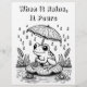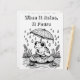 雨が降ると雨が降る、引用文。雨の中で傘を持ってユリのパッドに座っているかわいいカエル。