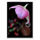 雨低下の空白のなカードが付いているピンクのアジサイの花