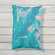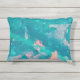 この抽象芸術枕のZoeSPEAKのアートワークは、庭の葉に雨の滴のオリジナルの写真から作られた。デザインの色はトロピカルアクアブルーとピーチピンク。