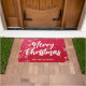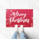 雪が積もった聖降誕祭の赤い背景 ドアマット