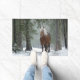 雪が降る冬の森の中の茶色の馬 ドアマット