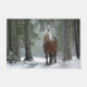 長い白い薄汚れのたてがみを持つ茶色の馬の写真を持つドアマット。雪が降り注ぐ森の中に立のまわりにつ。