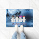 愛らしい雪だるまの家族4人の氷の背景凍っていにパーソナライズされた、あなたの家族の名前、ビジネスまたは特別なメッセージ!冬素晴らしの休日と季節のために!