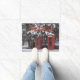 雪で覆われた古い赤い電話 ドアマット