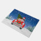 雪のクリスマスに車を運転するビーグル犬 ドアマット