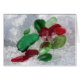 雪の中の赤と緑の海のガラスは、美しいホリデーカードを作る。