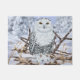 雪の中のこの美しい雪のフクロウ、ドアマットはフクロウを愛する誰にでも最適である。ボブ・テイラーによるアートワーク