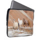 雪の中の小さな馬の群れのある隠れ家の牧場 ラップトップスリーブ