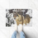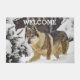 雪の動物の大きな灰色の野生の狼の姿 ドアマット