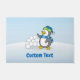 雪だるま式のスタックの前で振る小さなペンギンの漫画。カスタム文字。