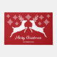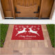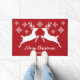 雪の赤に白い鹿のシルエット ドアマット