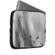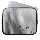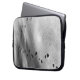 新雪の発塵は、密度の異なる黒いドライブウェイを覆う。2組の黒いブーツプリントは、画像の上部で並んで開始し、この縦白黒の写真で見る人に近づくにつれて発散する。1つのトラックのセットが下のコー離れナーに向かい、もう1つの足跡のセットがフレームの右側の半分に出ている。デジタル、モノクロ写真。Copyright © 2010 Claire E. Skinner.すべての権利が留保されている。
