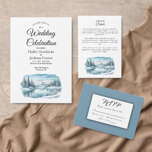 雪山の冬の湖の囲結婚いカード エンクロージャーカード
