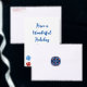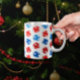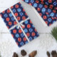 雪片のあるクリスマスブルーと赤いオーナメント ラッピングペーパー