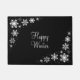 黒い背景の美しく白い雪片はこのかわいらしい洗練された季節的な玄関マットを、単語の幸せな冬と作りますか、またはあなたの選択のあなたの名前、か他のメッセージとカスタマイズ。 一致項目はZazzleの私の店で利用できます。