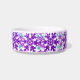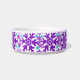 ダークブルー、ターコイズ、紫のカラフル雪の配列と可愛いペットフード丼。カンザスのアーティストがデザインした明るく陽気なペットフードのボウル。