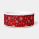 赤い背景に白い雪片が多く見えます。カスタマイズペットの名前で。クリスマスに最適。