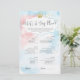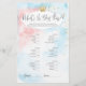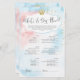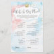両面ベビーシャワーゲーム。片側は「電話には何が入っているか」、裏側は「財布には何が入っているか」である。 ピンクとブルーの水色の背景にモダンスクリプトフォントを搭載し、驚きに最適なベビシャワーゲームカード!王子か王女?このカードを使ってトレンディー性リビールパーティー!