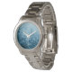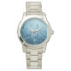 エテかわいらしリアエレガントルなブルーのフローラシーンを搭載した腕時計。