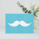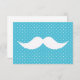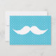 可愛おもしろいい青い水玉模様に白い口ひげクール可愛い青いヴィンテージの水玉模様模様の背景におもしろいギーク80年代の白い口ひげを付けたレトロなデザイン。どんな大事な行事でも彼女にとって完璧なユーモアの贈り物アイディア。