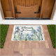 Redoute による青いアイリス花のヴィンテージの 芸術の絵画の豪華な庭のコラージュは この花のパーソナライズな歓迎された玄関マットにあります。 イメージは期限切れの版権による公有地です。 コラージュは私によって行います。
