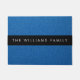 青いグリッター、グリッターの背景、名前 ドアマット