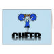 青いユニフォームおよびpomのpomsのチアリーティングのチアリーティングのTシャツ、フード付きスウェットシャツ、マグ、カード、ステッカー、トートバック、チアリーダーの磁石、切手および他のチアリーダーの服装およびギフト項目。