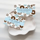 可愛くておもしろいで、青と茶色のドーナツが付いた可愛らしい名刺。トレンディーモダンデザイン、ケーキ店、ペストリー店、ドーナツバー、ベーカリー、デザートバーに最適。