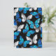 黒い背景にリアルな青と白の蝶のシームレスパターン