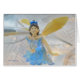 休日紙、グリッターおよびライトの中の青い服のランニングを用いる美しい妖精。 敏感な星は彼女をどこでも後を追うようです。 卓上の写真撮影。