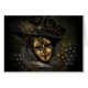 青い帽子および羽が付いている金ゴールドのカーニバルのマスク