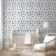 青い抽象芸術ラインの家のパターン壁紙。この青い抽象芸術ラインの家のパターンの壁紙で宇宙を更新。キッチンのバックスプラッシュ、バスルームなどに最適。