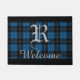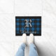 青い格子縞のパーソナライズな名前 ドアマット