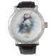 青い水色の可愛いパフィン、カスタマイズ可能 腕時計