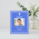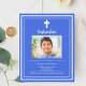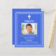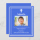 青王室の色の背景飾、白い枠と白い十字を付け写真の名前と詳細をカスタマイズして追加。白文字。1枚= 1枚の招待状を印刷したエッジからエッジ