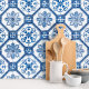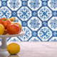 この美しい青と白のタイルの壁紙で宇宙をフェイクリフレッシュする。キッチンのバックスプラッシュ、バスルームなどに最適。