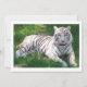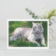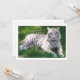 青い目の珍しい白いトラリラックスは、緑の草の上で泳ぐのを後にする。彼は「うん!」と言って鼻もしをなめている。写真:Susan L. MarshによるSusan's Zoo Crew.フロリダを取る