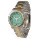 この男達の時計は、シーフォーモダンムグリーンのフィールドに青の2つの色合いで矢印の半デザインを持っている。
