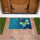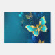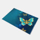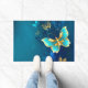 青い背景に浮かぶ金色の蝶 ドアマット