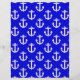 青い背景航海のに白いいかり。デコ航海のアのパターン。