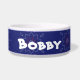 青い花模様のペットボウル。ペットの名前を追加できます。