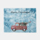 青い雪の上の赤いヴィンテージトラック ドアマット