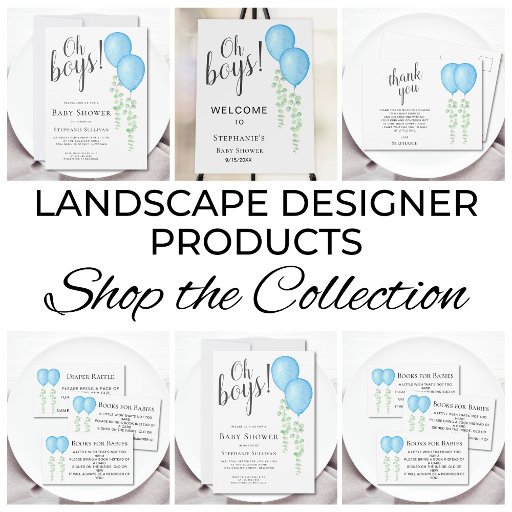 この双子男子のベビーシャワー招待状は、水彩画の青い風船と緑のユーカリでデザインされ、「おとこのこだ!」と書かれています。