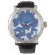 青い70年代のスタイルの円 腕時計